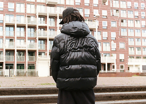 Patta Quilted Script Logo Puffer Jacket (Navy)